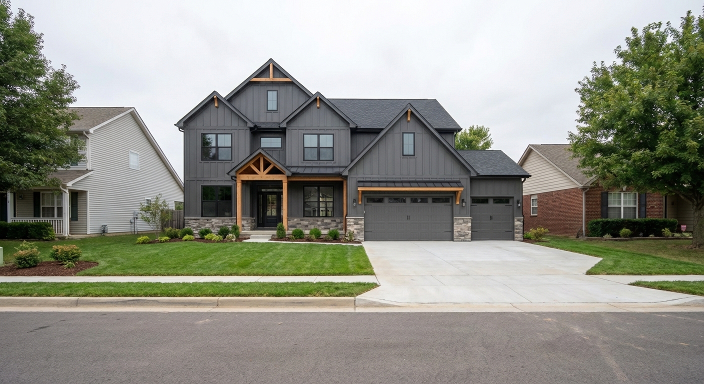Upload the raw lot with survey stakes. AI renders the finished home — matching your proposed style, siding colors, roof pitch, landscaping, and driveway — on that exact parcel. Buyers stop imagining and start committing.